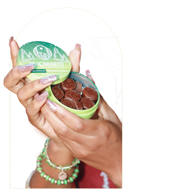 PSACRAMENT is our church auxiliary for psilocybin sacraments, not a brand. There are no gimmicks here—only sacred tools, shared with care.