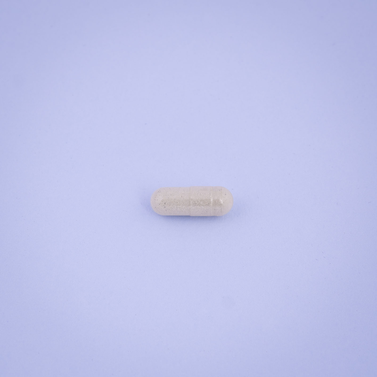 Organic Psilocybe cubensis fruiting bodies (finely ground and sifted), vegan capsule.