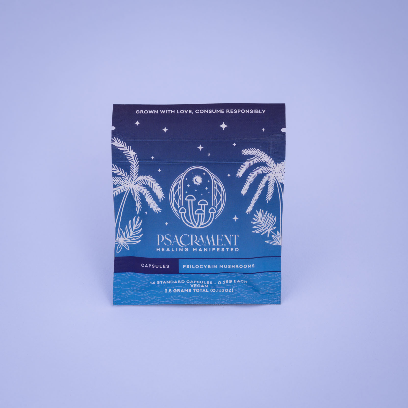 Each package includes 14 vegan capsules, each with 0.25g of finely milled, organic Psilocybe cubensis fruiting bodies. That’s a total of 3.5g of sacrament per pack — an ideal amount for multiple smaller ceremonies, therapeutic dosing, or building a larger ceremonial dose.